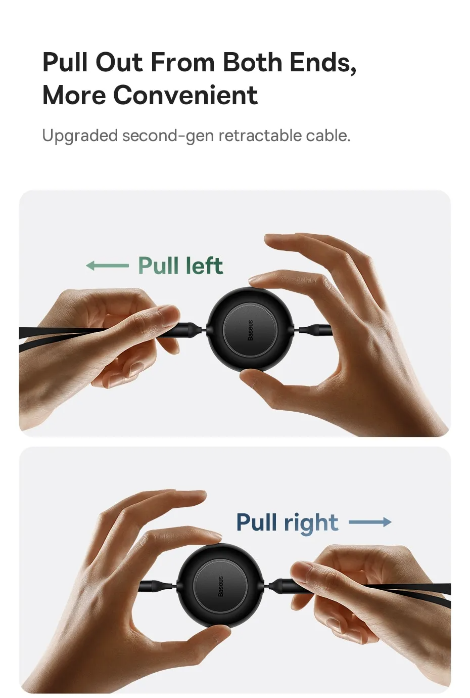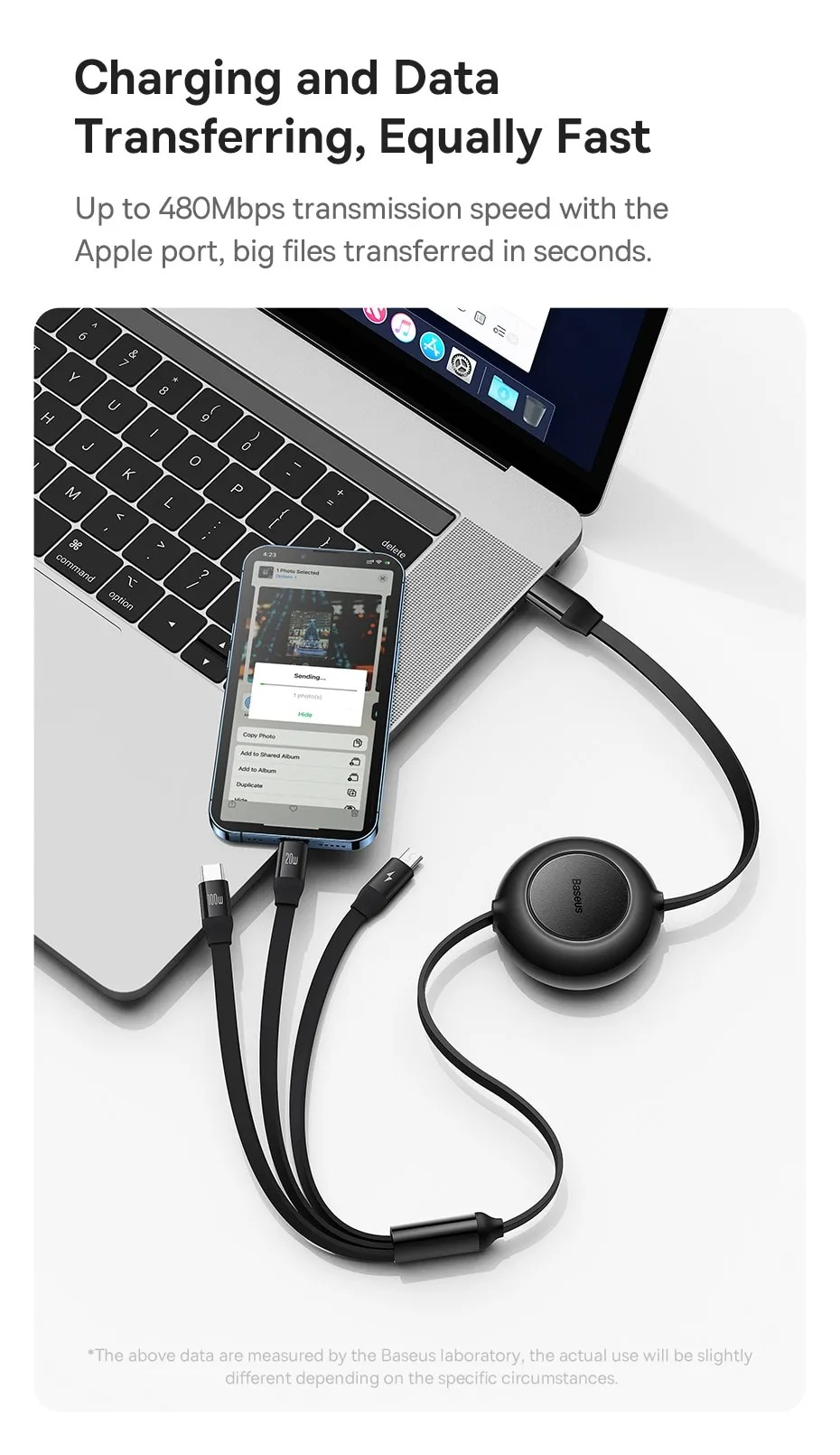 Baseus 3 in 1 Retractable 100W Fast Charging Data Cable For iPhone 14 Pro Max 13 12 11 X XR iPad Type C to Lightning Micro USB C Cable for Samsung S23 S22 Xiaomi Fast Charger Cable