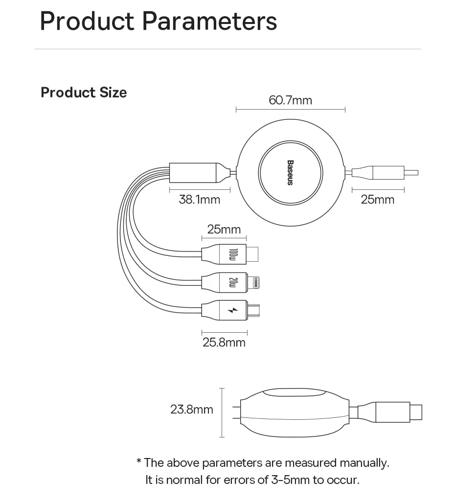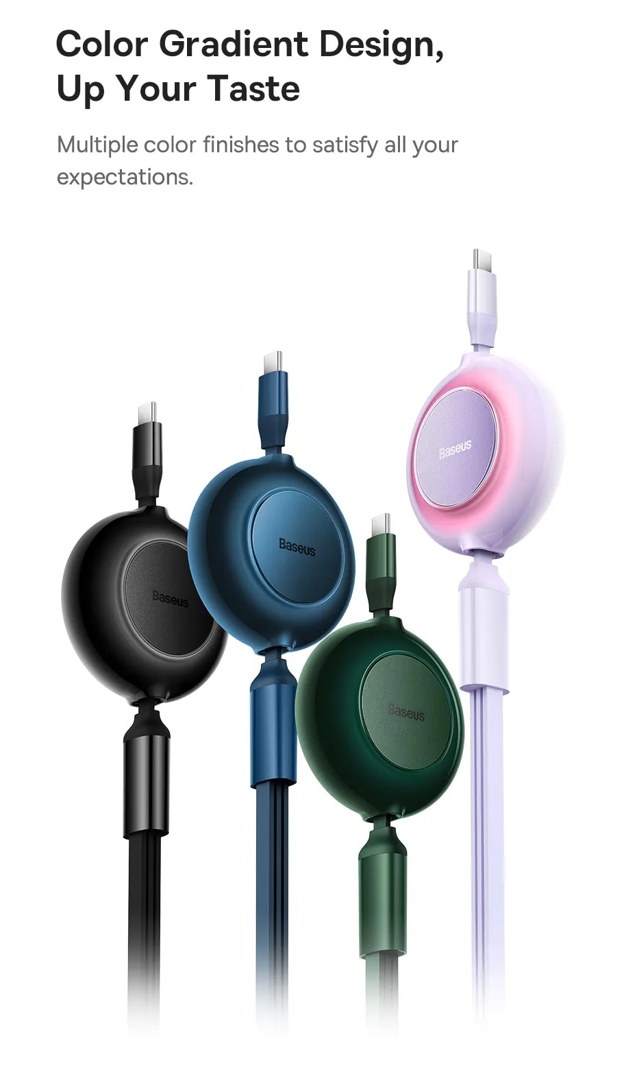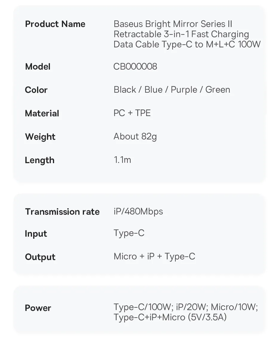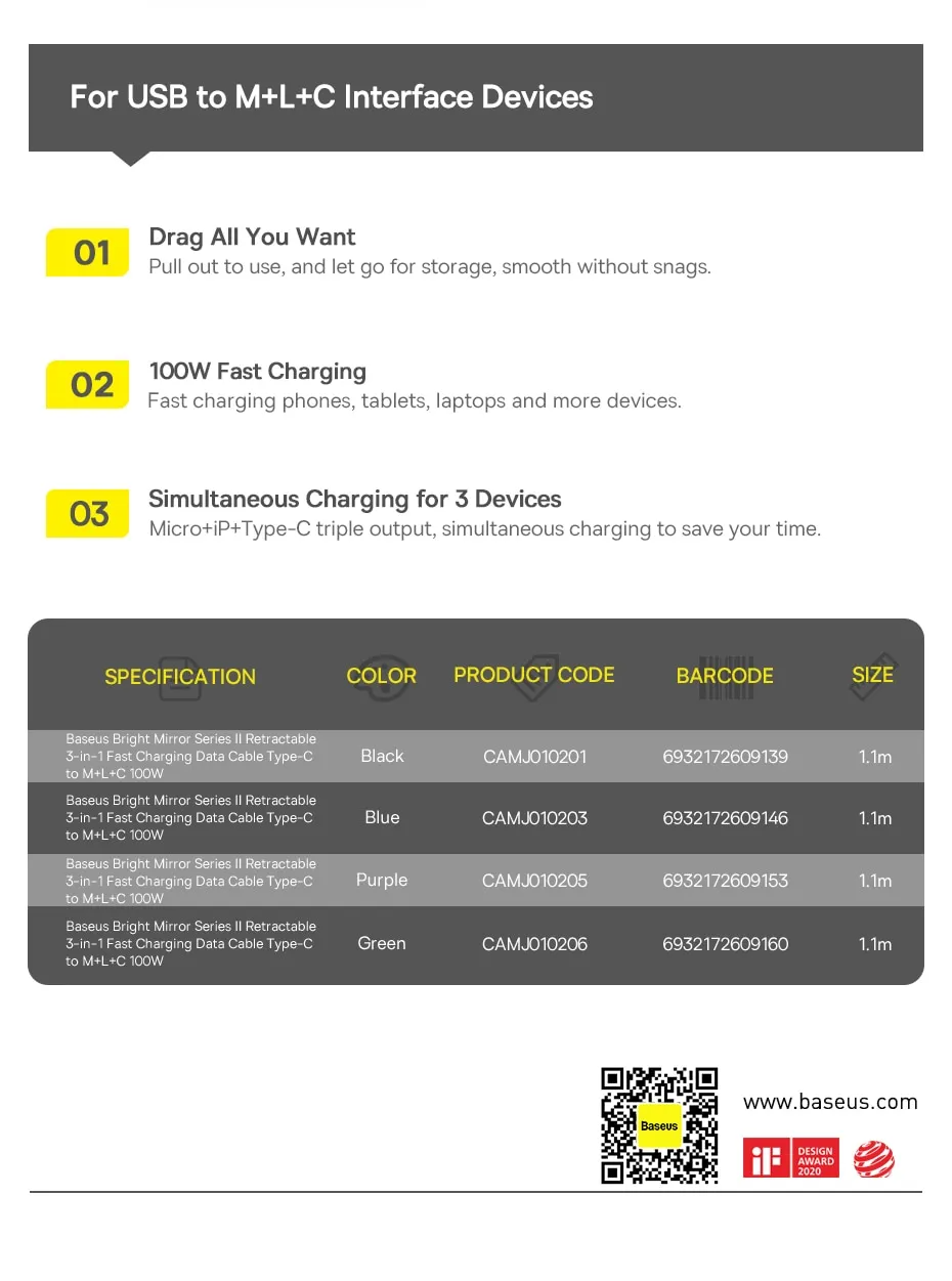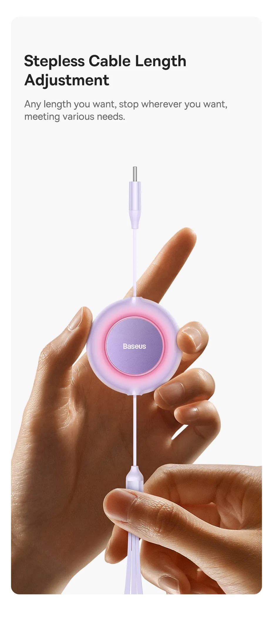 Baseus CAMLC-AMJ03 Bright Mirror One-for-Three 3 in 1 Retractable Cable Data Cable Type-C To M+L+C: