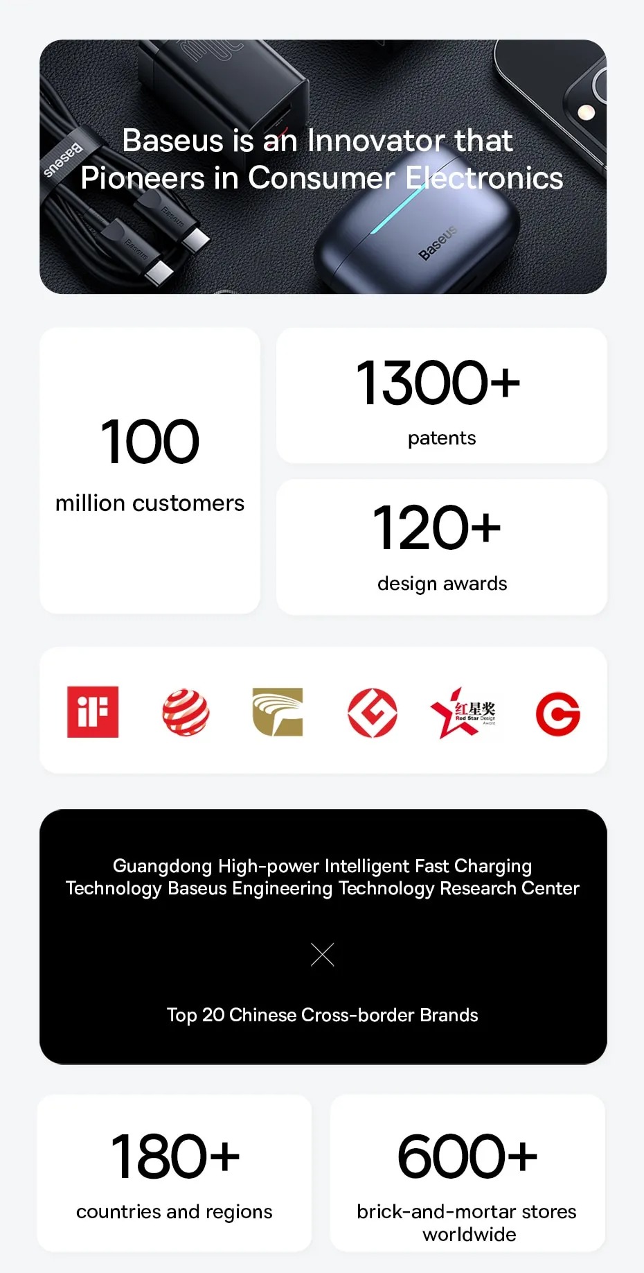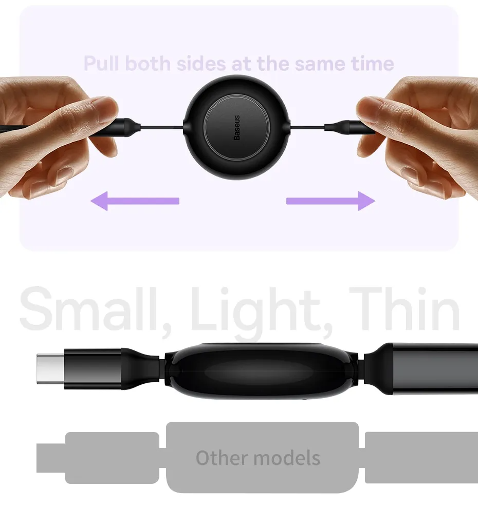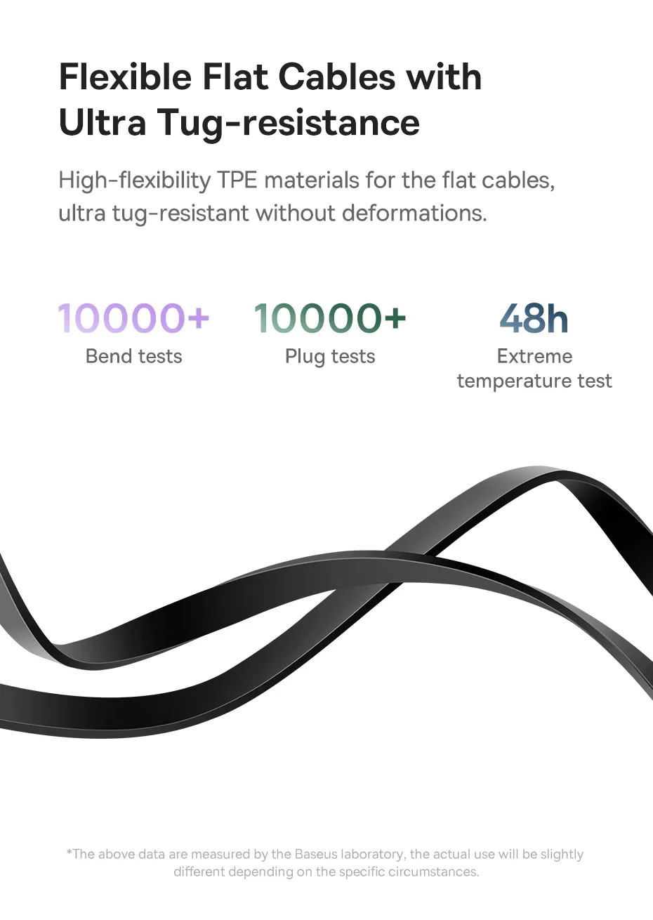 Fast charging with up to 100W of power. Ability to connect 3 devices simultaneously. 5-step length adjustment. With Baseus all this is possible! Flat 3-in-1 cable CAMLC-AMJ03 was equipped with 3 different connectors - micro USB, USB-C and Lightning. It allows you to transmit data at a speed of 480Mbps. Durable and wear-resistant - it also catches the eye with its sleek, modern design.