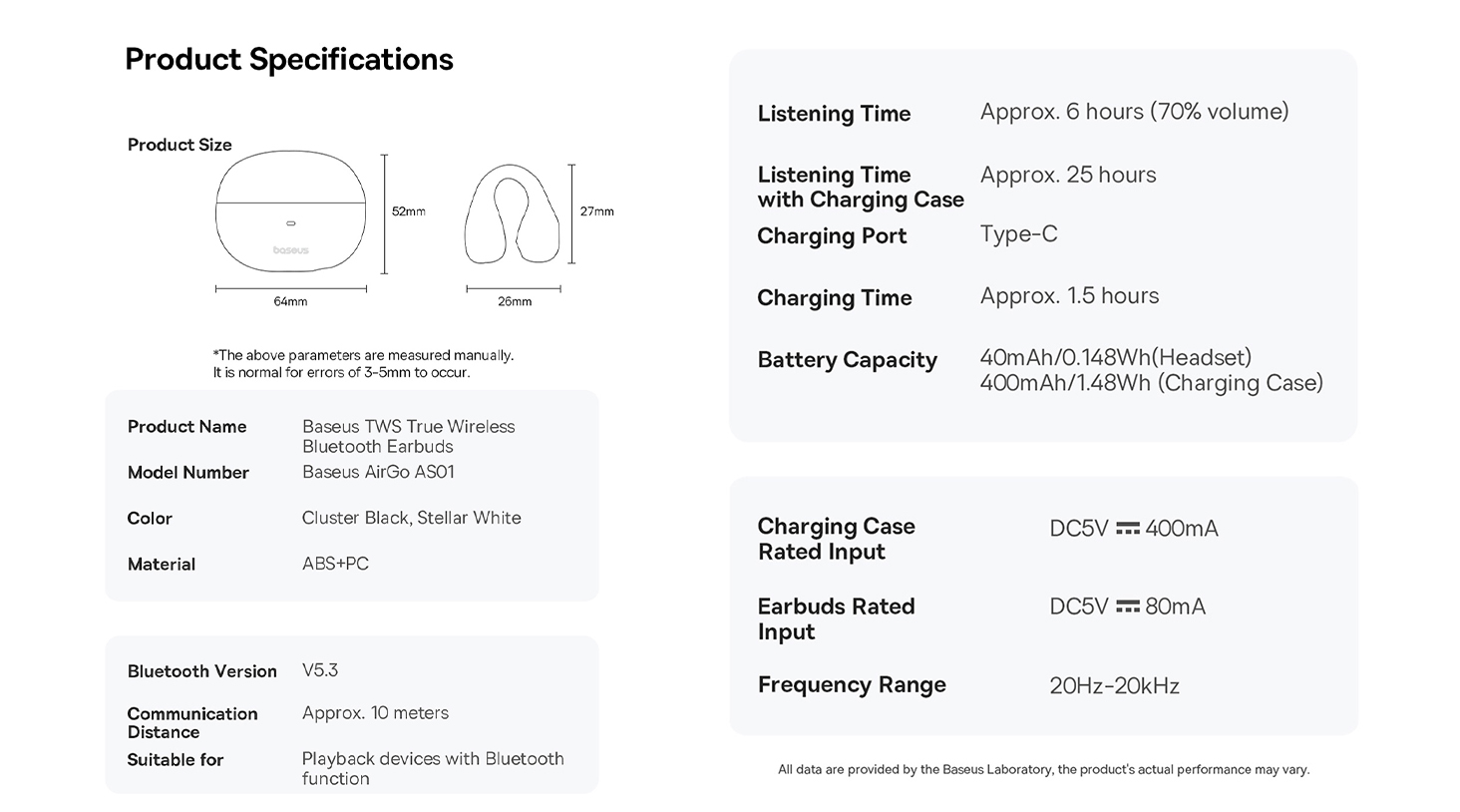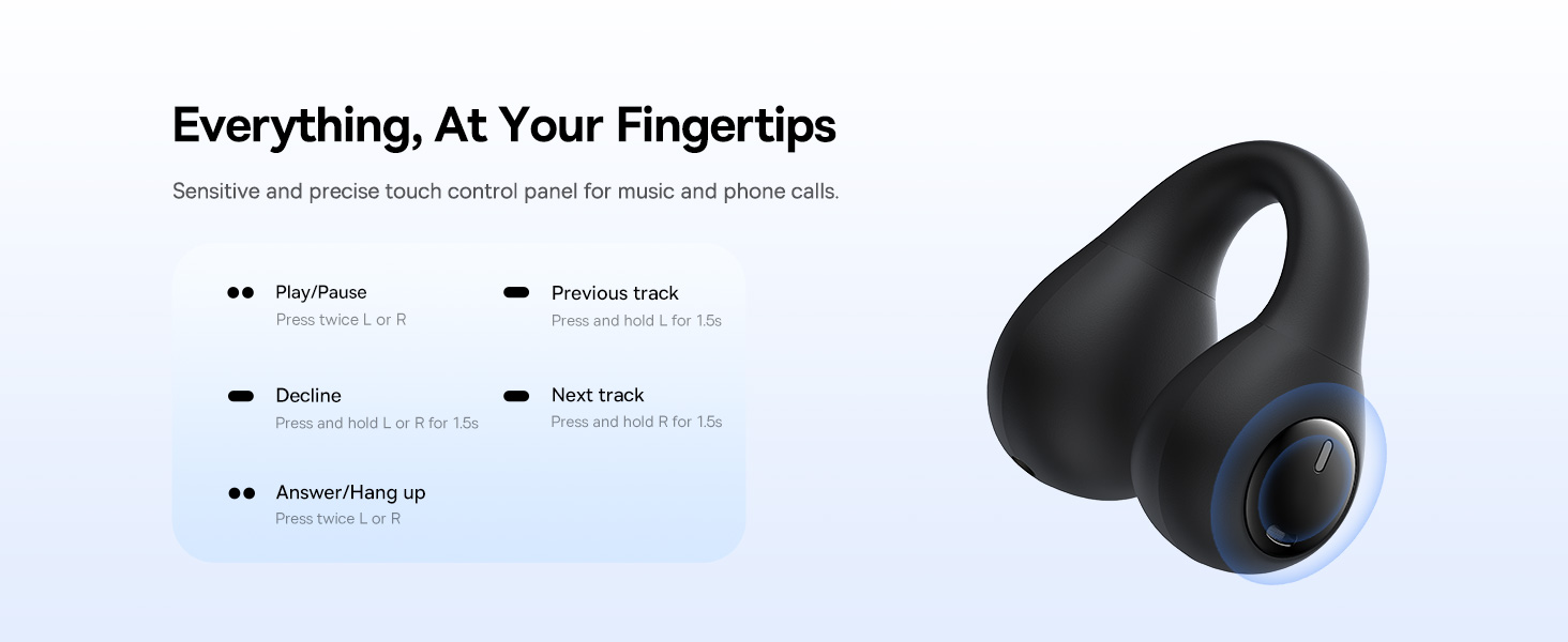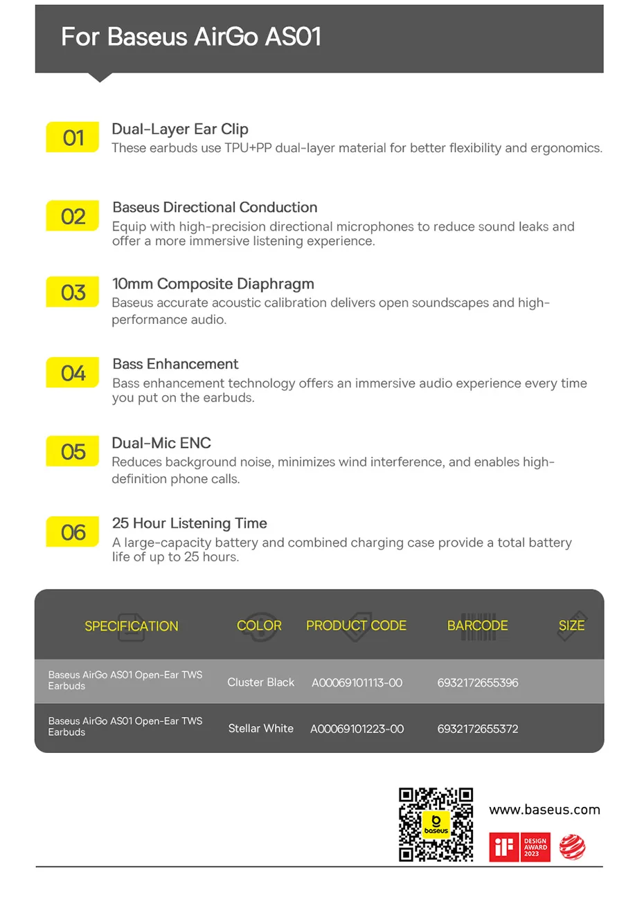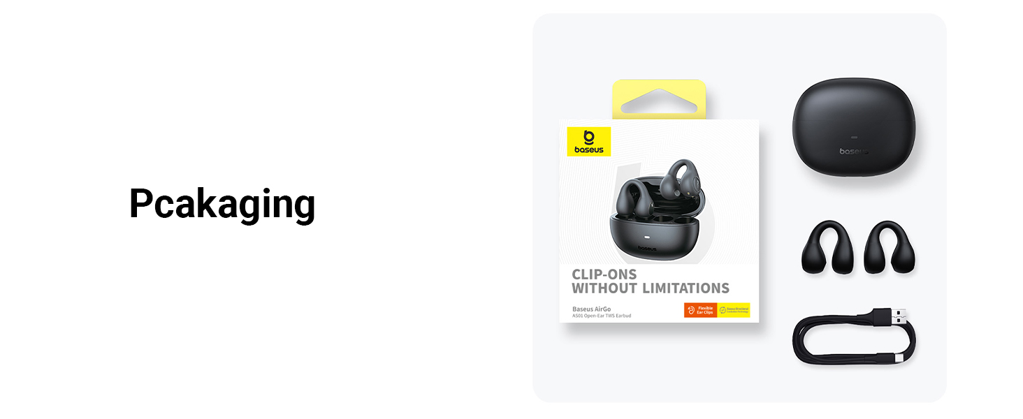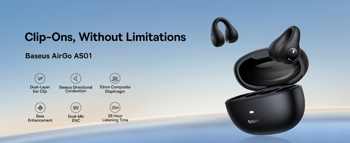 Baseus AirGo AS01 Clip On Open-Ear Bluetooth Wireless Earbuds With Dual ENC Mics Ultra-Lightweight Earphone