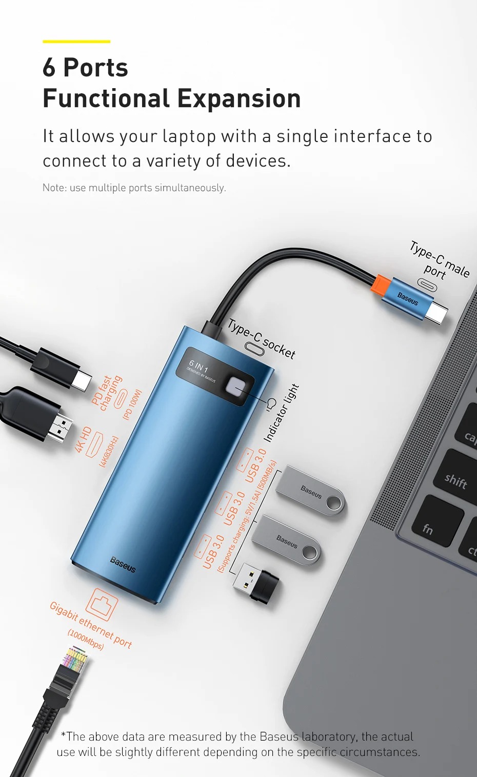 - 6 Ports Functional Expansion: It allows your laptop with a single interface to connect to a variety of devices