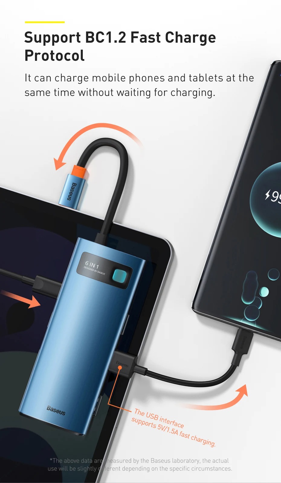 - Support BC1.2 Fast Charge Protocol: It can charge mobile phones and tablets at the same time without waiting for charging