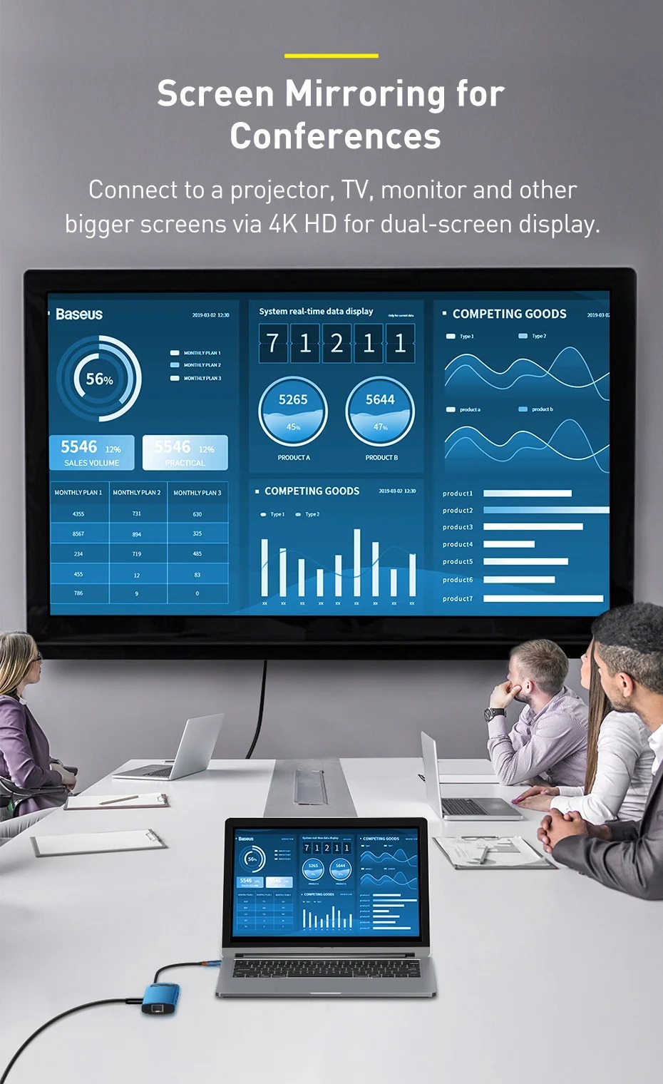 - Screen Mirroring for Conferences: Connect to a projector, TV, monitor and other bigger screens via 4K HD for dual-screen display