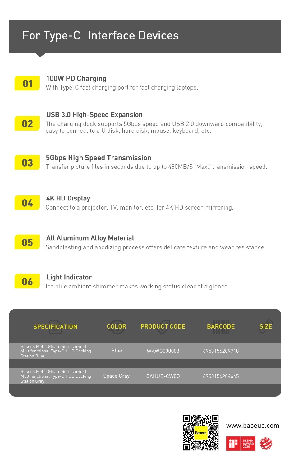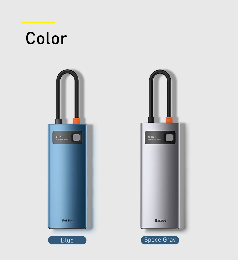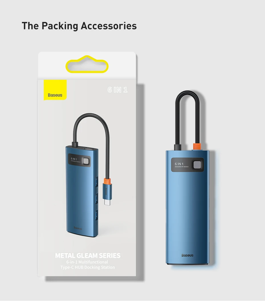 Baseus Metal Gleam Series 6-in-1 Multifunctional Type-C HUB Docking Station Gray(Type-C to HDMI*1+USB3.0*3+PD*1+RJ45*1)