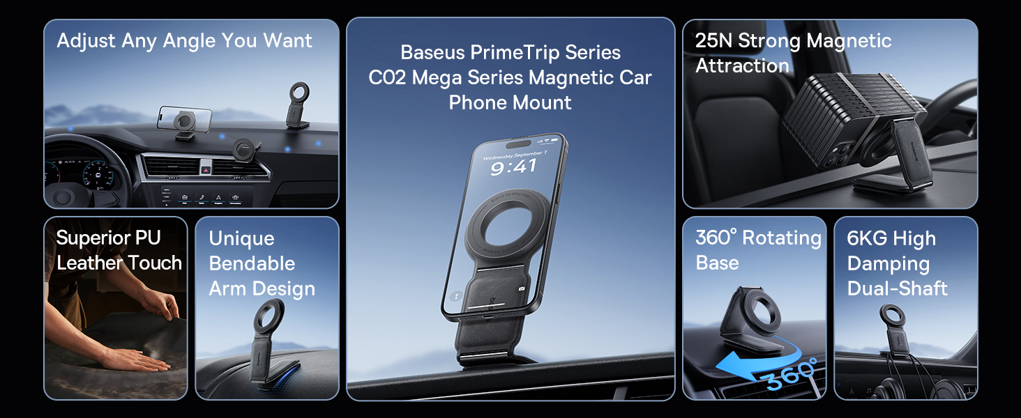 The future of phone holders is here, and it's magnetic! The Baseus PrimeTrip C02 Mega Series Magnetic MagSafe Phone Holder is more than just an accessory; it's a driving companion that ensures your device remains safe and accessible. Upgrade your driving experience and never look back!