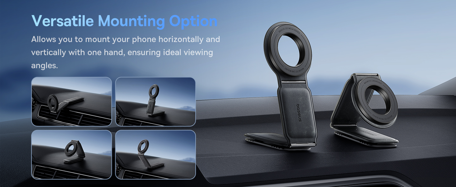 - 360° Rotation & Two-axis Foldable Design: Allows for flexible adjustments and various angles, suitable for car dashboards, Tesla screens, and desktops. The foldable design conceals the holder for a neater environment.