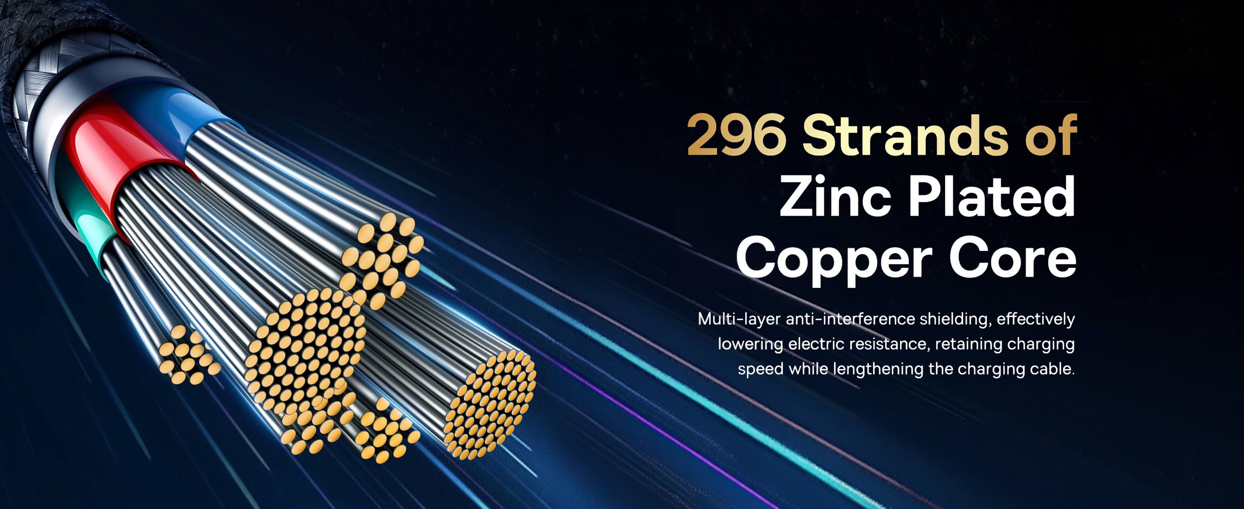 - High-Quality Zinc Alloy: 296 strands of zinc-plated copper core multi-layer anti-interference shielding for effective charging speed retention.