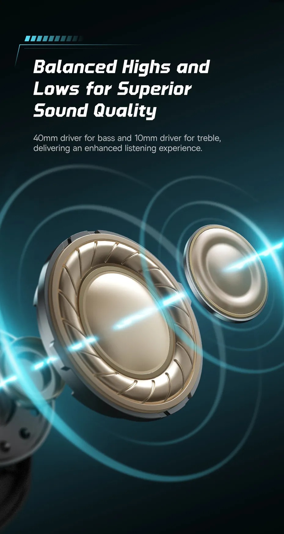 Play games without limits with Baseus GoPlay 1 Max Gaming Wired Headphones 3.5mm. This gaming headphone has 40mm drivers that can deliver deeper and more impactful bass. It has a more expansive soundstage, contributing to clearer, more detailed, balanced, and realistic in-game audio.
