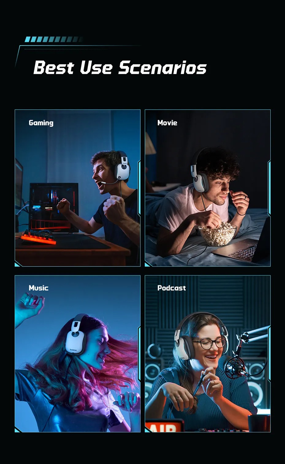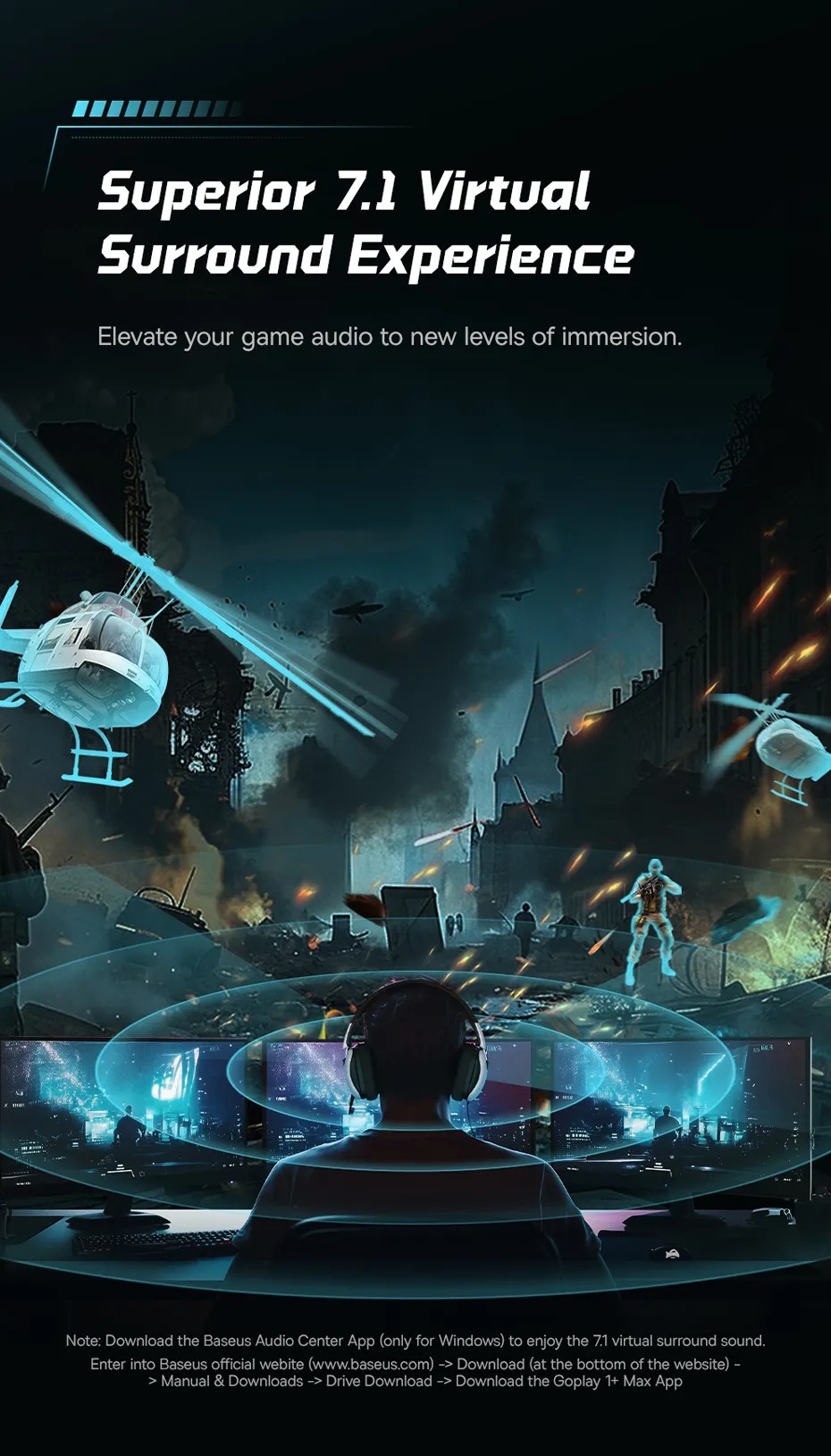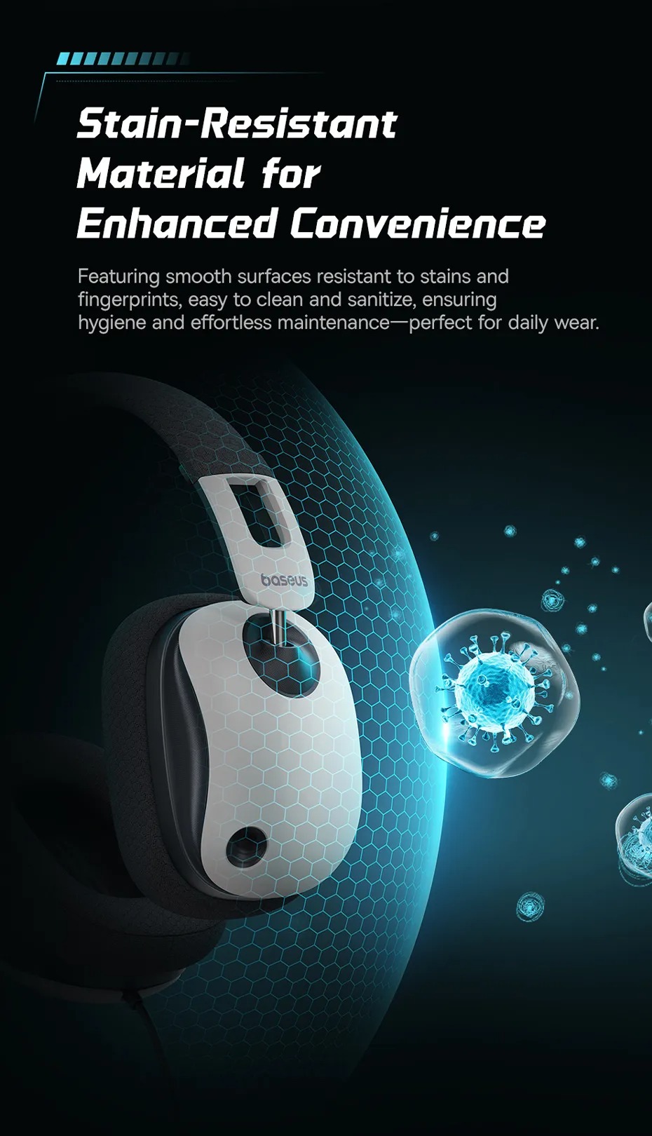 The Baseus GoPlay 1 Max uses stain-resistant material which is easy to clean making it ideal for daily gaming. With the high signal-to-noise ratio, game scenes and dialogue sounds just as intended, and you can pinpoint sound sources precisely.