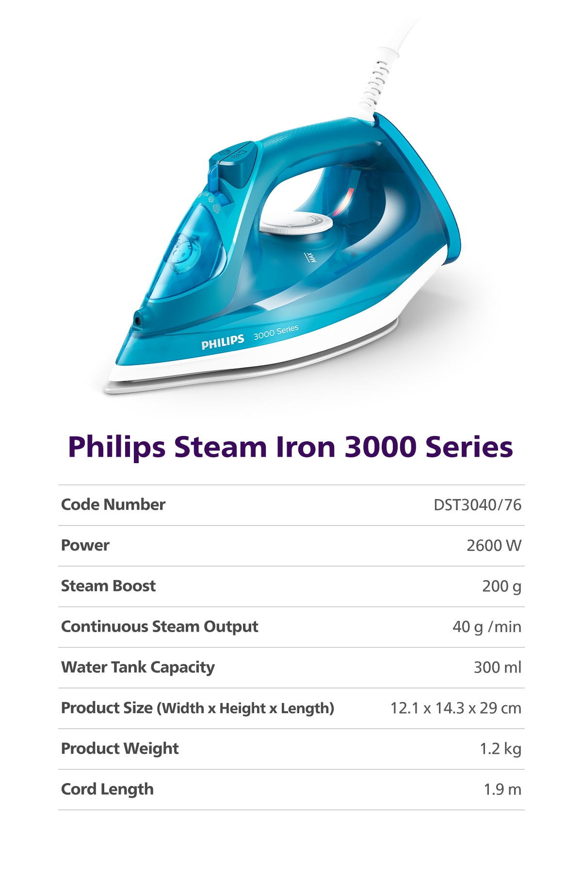 PHILIPS 3000 Steam Iron - DST3040/76 - Ceramic soleplate
